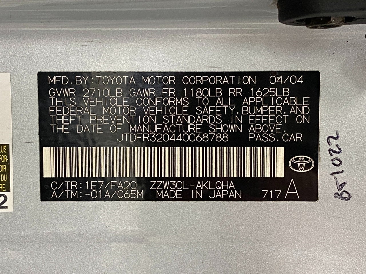 - Vehicle Name: Toyota MR2 Spyder